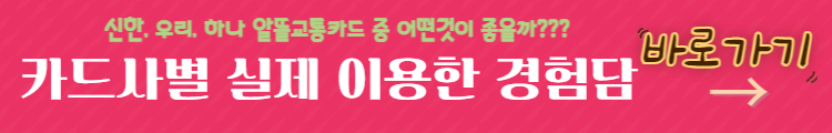 신한과 우리카드는 전월실적이 30만 원이 넘어야 하지만 하나카드의 경우는 전월실적이 50만 원 이상이어야 혜택이 적용됩니다. 이미 주력으로 사용하는 카드가 있다면 전월실적이 조금 더 적은 신한과 우리카드가 좋고, 전월실적 50만 원 이상을 채울 수 있다면 하나카드를 선택하시는 것도 좋아 보입니다.